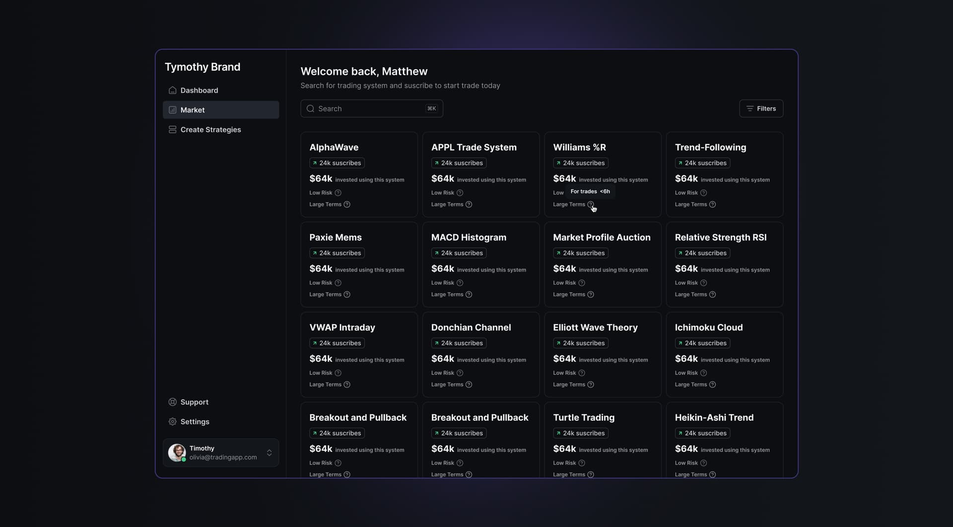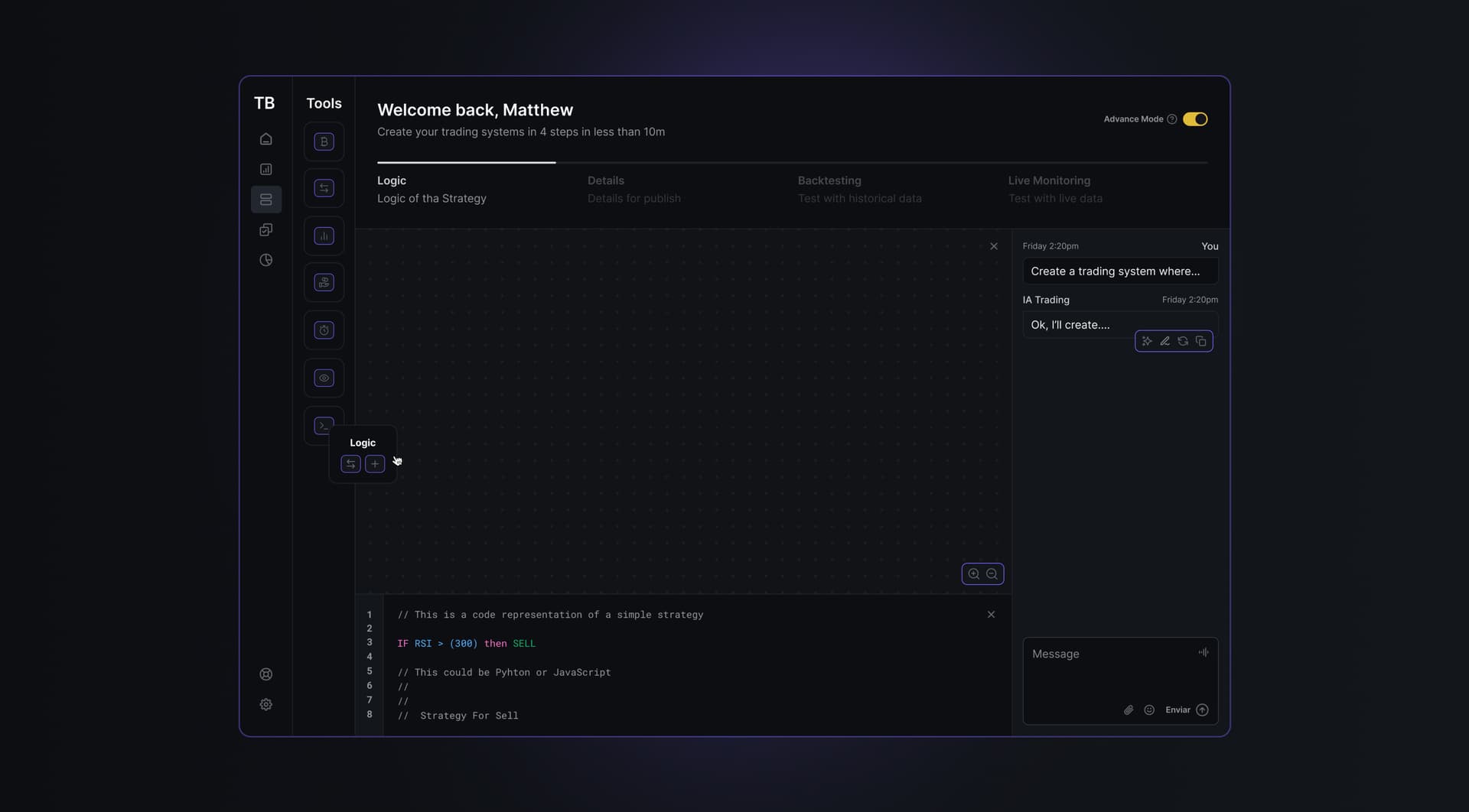 Drag-and-drop strategy builderAdvanced code editor experienceStrategy testing and deployment flows